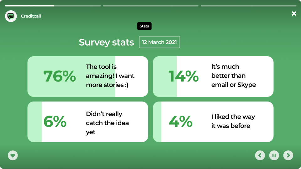 The company received positive feedback from the team right away. Everybody especially enjoyed content visualization as a more appealing and convenient way of communication, motivating messages in the morning and fast delivery of important news.