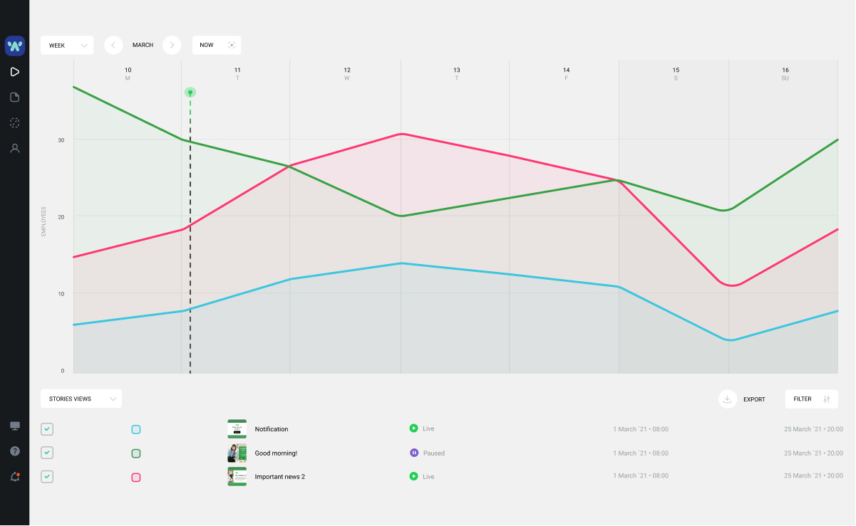 Workstories analytics helped determine how informed the team is in real time, without distracting employees with requests to confirm they've received important information.